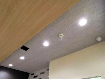 天井にアクセントクロスを取り入れ、温かみのある空間に仕上がりました。